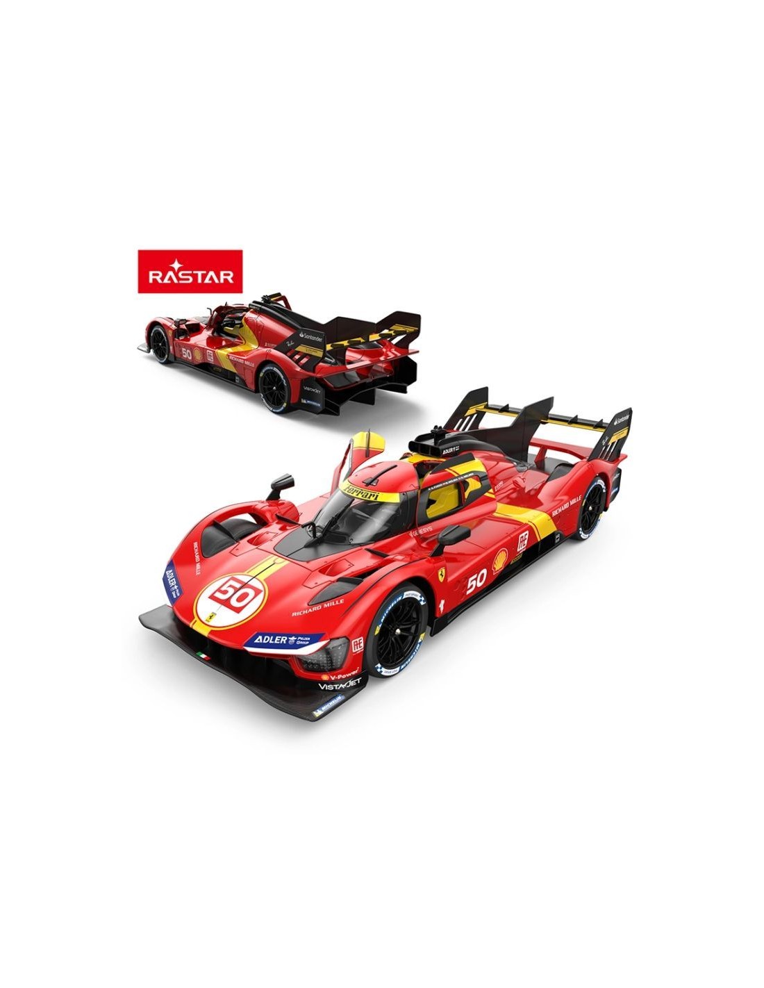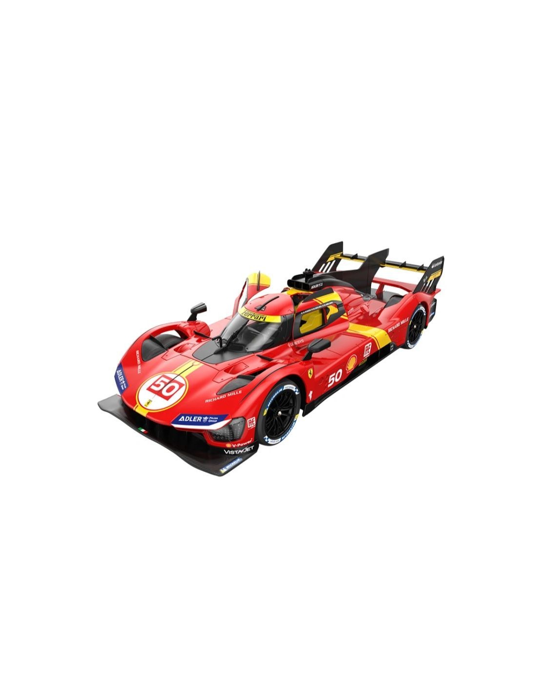 Svojom sportskom siluetom, profinjenim detaljima i prepoznatljivim crvenim i žutim naglascima Ferrarija, model izgleda kao pravi hiperautomobil klase Le Mans.