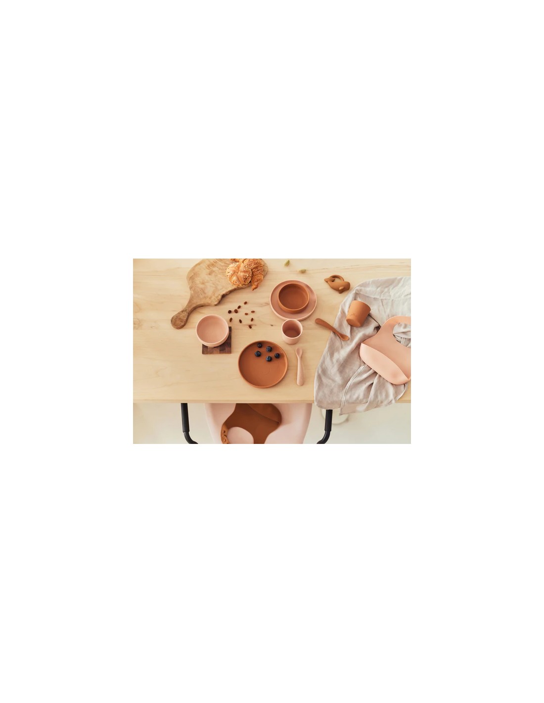 Na LeoLini imamo i dječji silikonski podbradak koji možete kombinirati s ovim stolnim priborom.