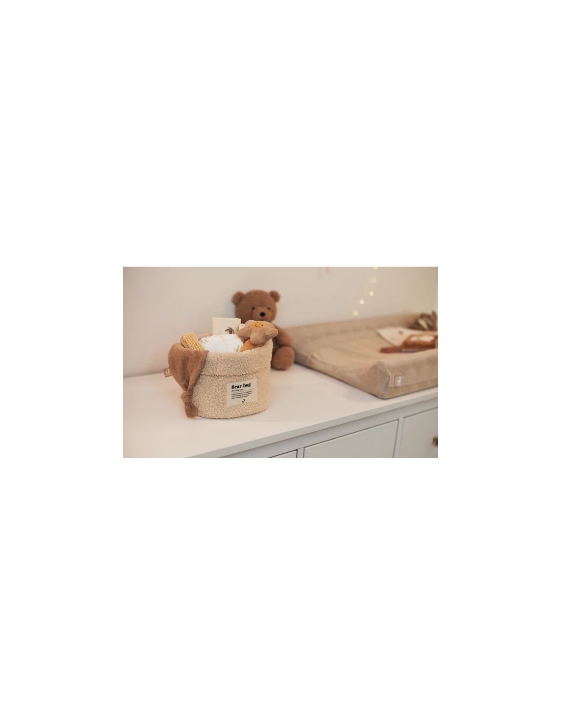Nježna i praktična košara izrađena od mekane Bouclé tkanine i savršena je za spremanje bebinih stvarčica.