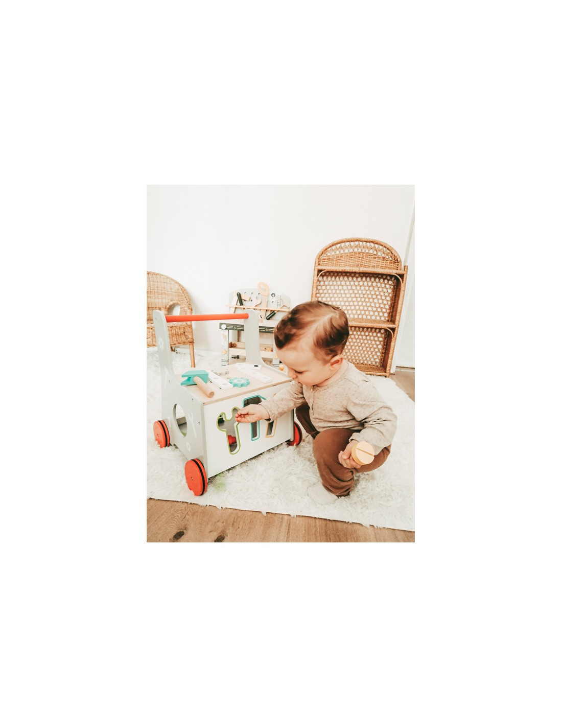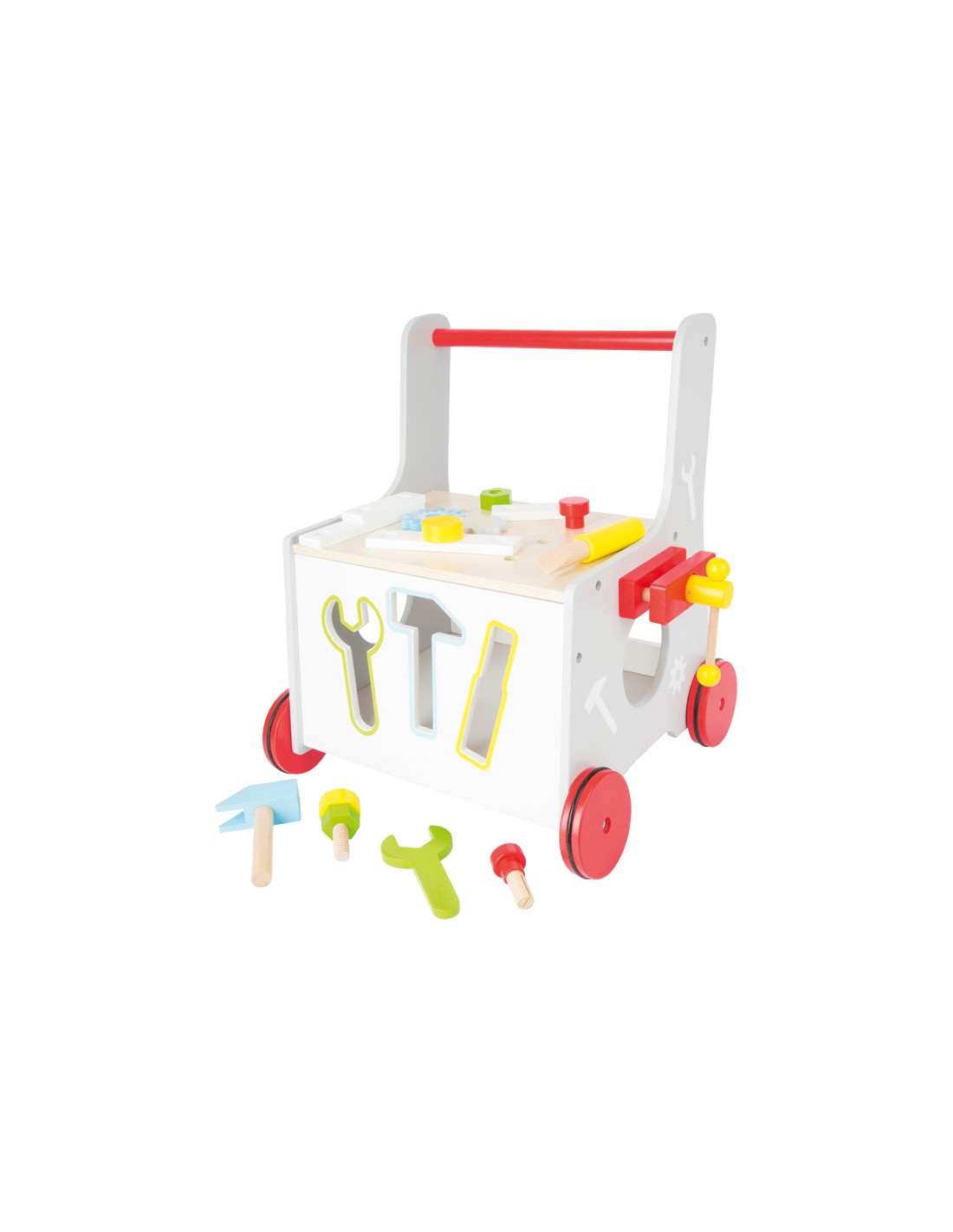 Djeca se mogu igrati čekićem, odvijačem i francuskim ključem uz pomoć brojnih rupa u gornjem dijelu hodalice, a alat se može pohraniti unutra - posebnim umetanjem u odgovarajući otvor na prednjoj strani.