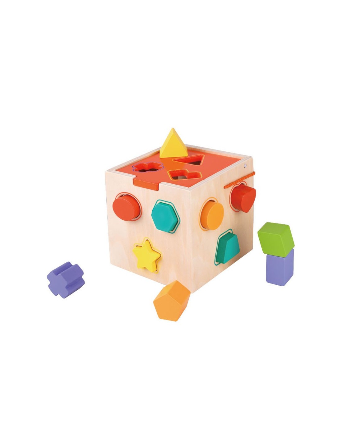 Svaki je oblik dizajniran da stane kroz odgovarajuću rupu na drvenoj kocki.
