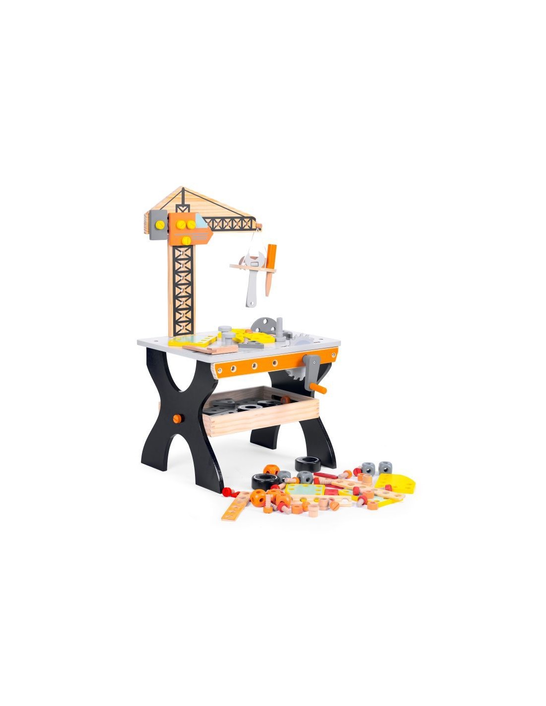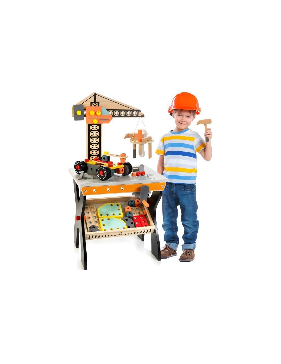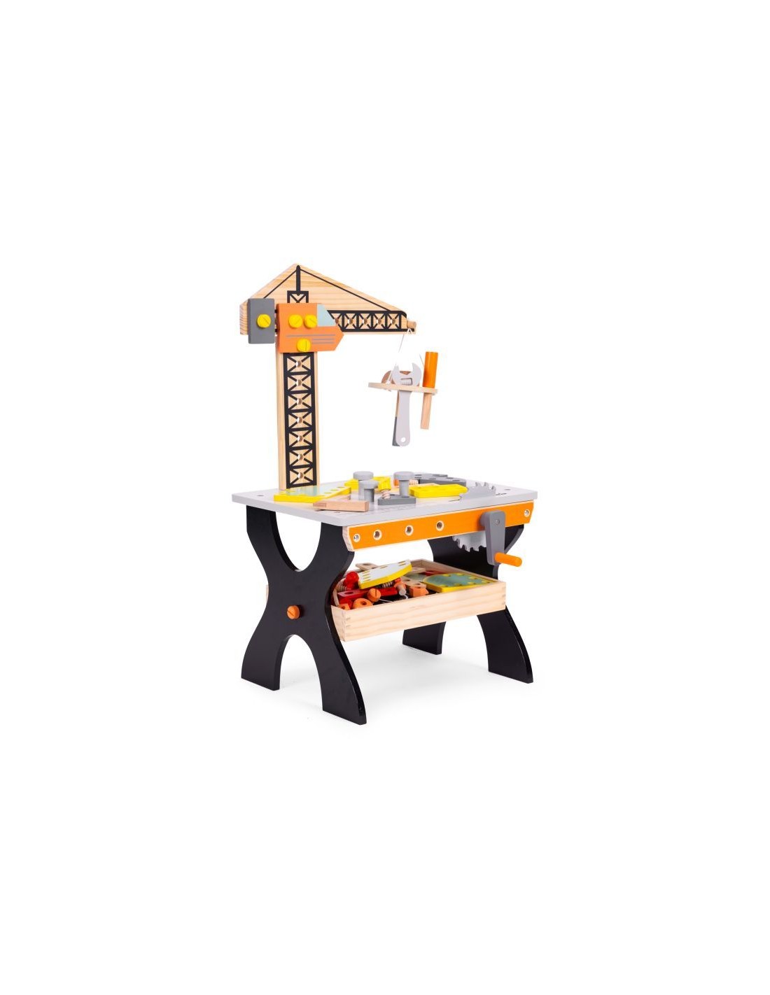 Opremljena je stolom za alat i raznim priborom, poput čekića, odvijača ili ključeva, a djeci omogućuje razvoj ručnih vještina i mašte.