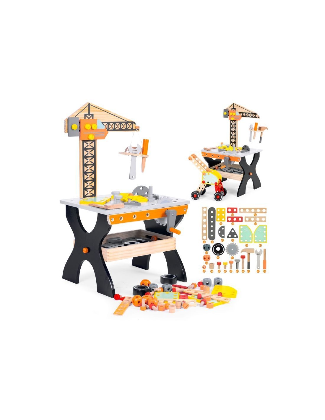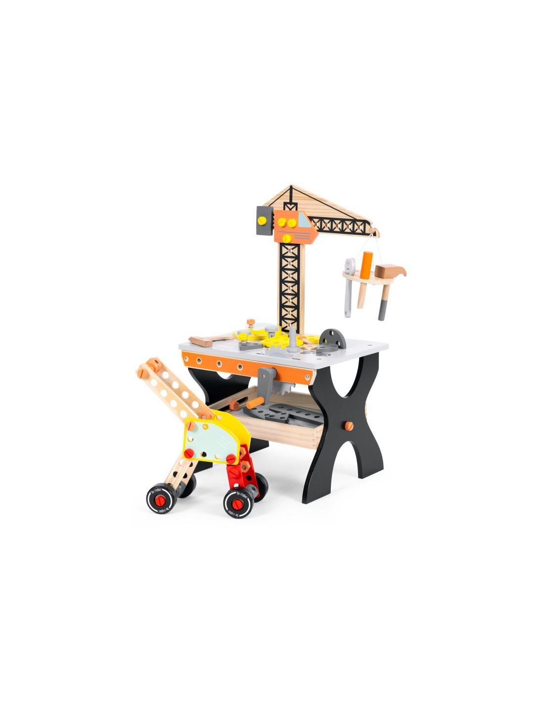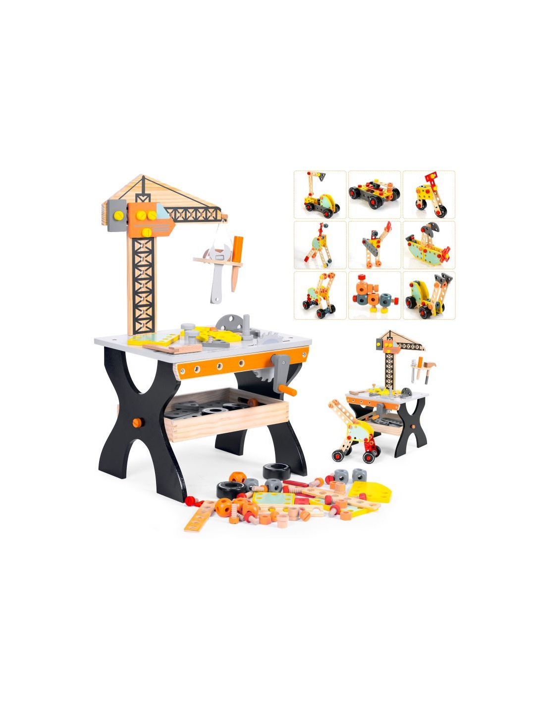 Opremljena je stolom za alat i raznim priborom, poput čekića, odvijača ili ključeva, a djeci omogućuje razvoj ručnih vještina i mašte.