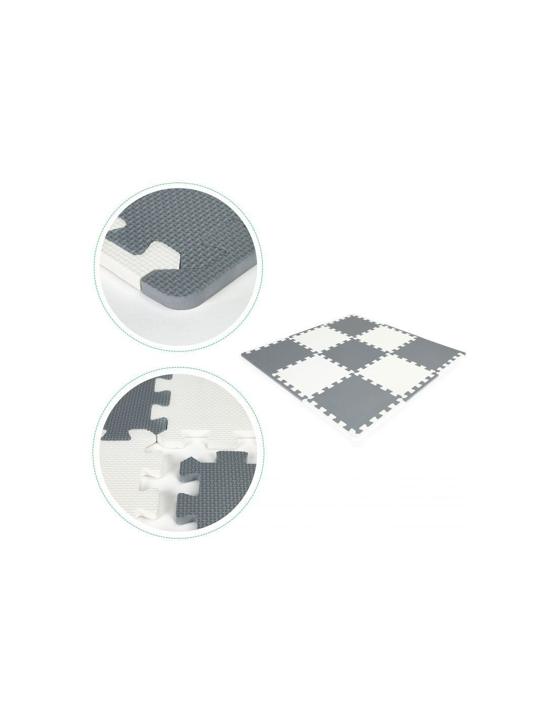 Sastoji se od kvadrata (9 elemenata) čiji rubovi imaju posebne "zupce" zahvaljujući kojima se mogu kombinirati na bilo koji način. Debljina prostirke (1 cm) pruža odgovarajuću zaštitu od pada i čini je ugodno mekom.