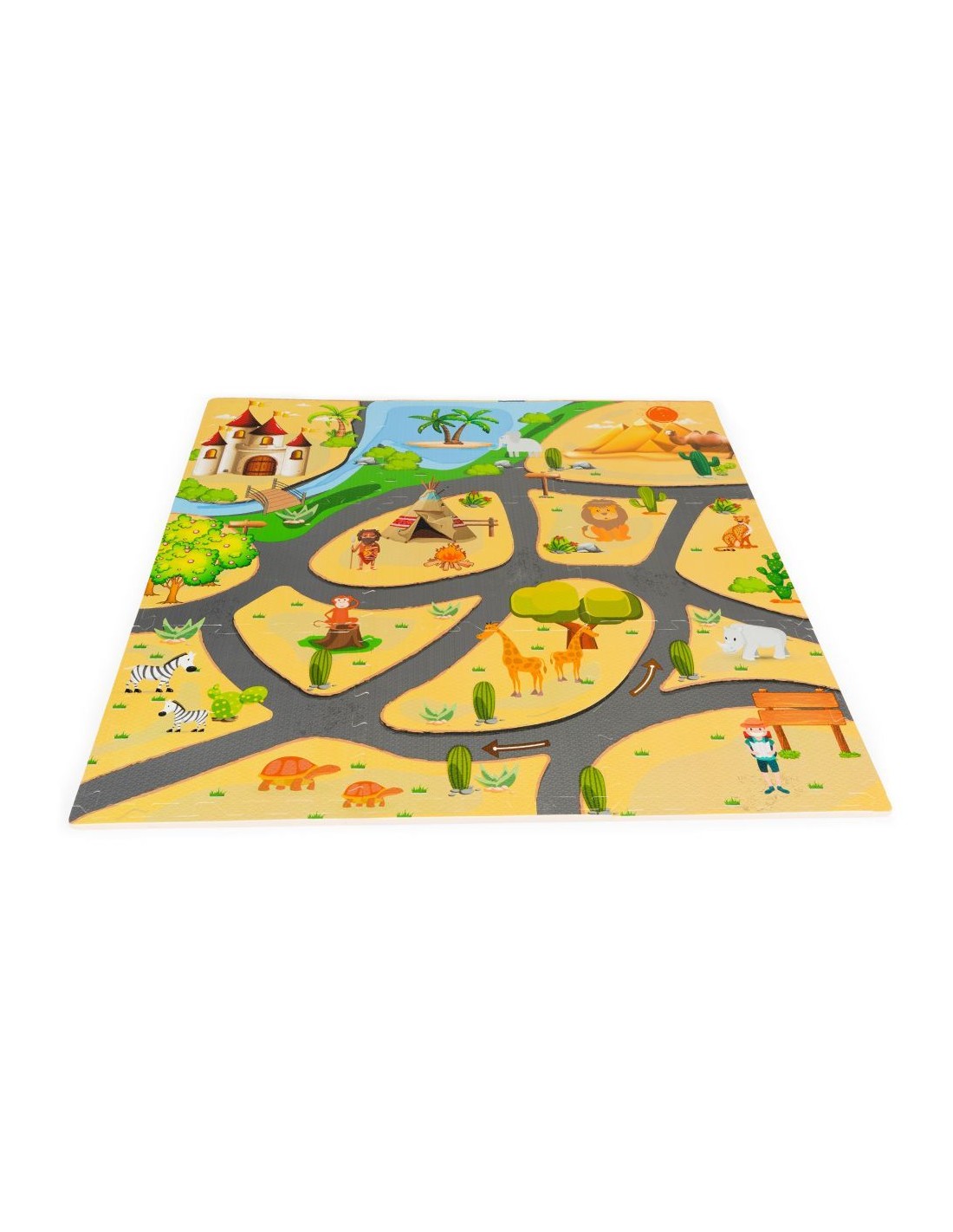 Podloga za igru SAFARI Ecotoys® u trendi dizajnu donosi vrste divljih životinja i prikazuje avanturu u pustinji.