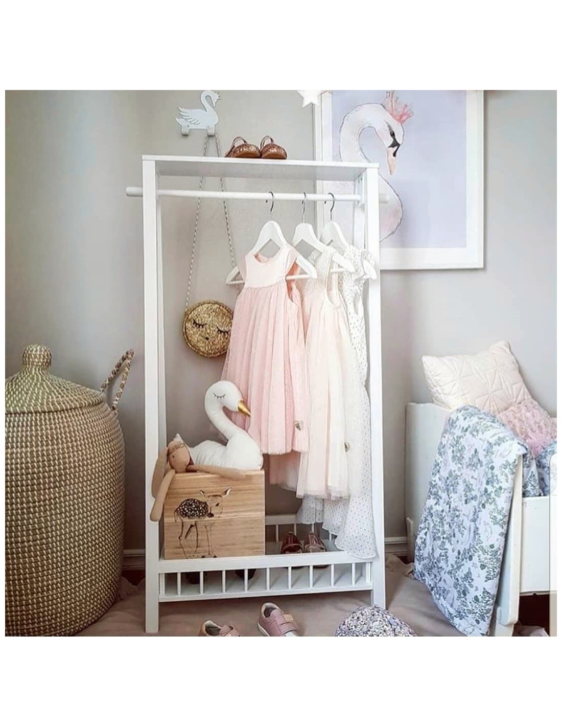 Svojom neutralnom bojom se veoma dobro uklapa uz ostali namještaj dječje sobe i u posljednje vrijeme stalak za odjeću je postao must have svake dječje sobe.