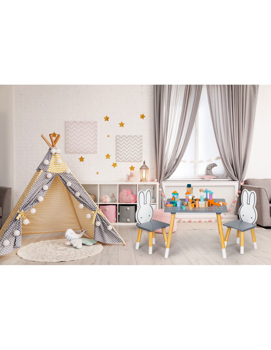 Set namještaja za dječju sobu sastoji se od moderno dizajniranog stola i dvije stolice.