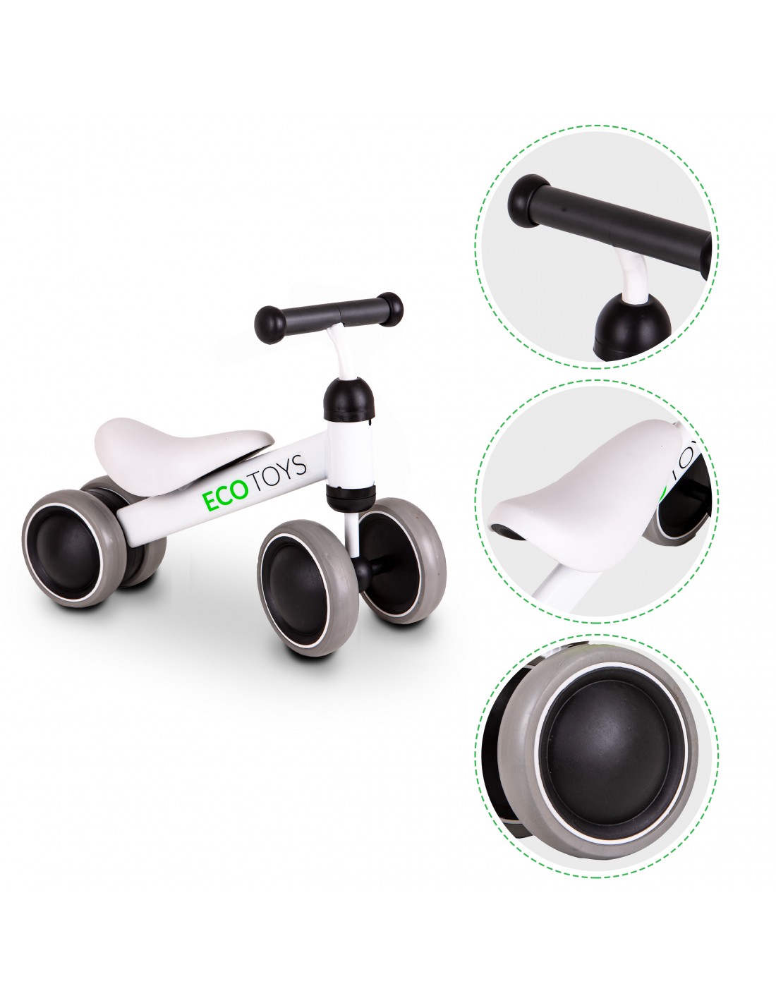 ECOTOYS bicikl za ravnotežu stvoren je za najmanju djecu koja tek kreću u svoju avanturu s biciklima. Bicikl je prikladan za djecu od 12 mjeseci starosti .
