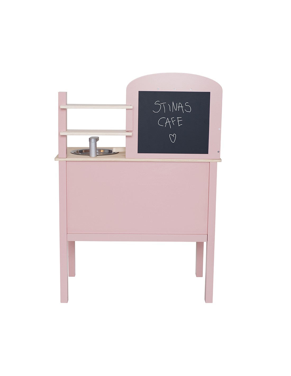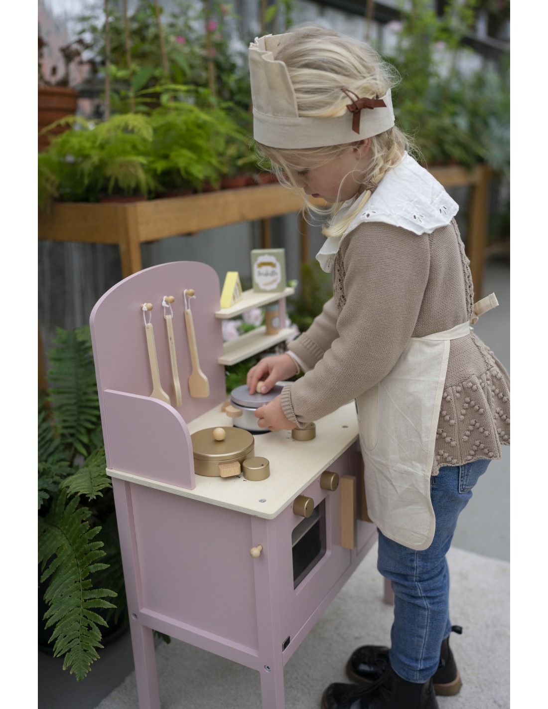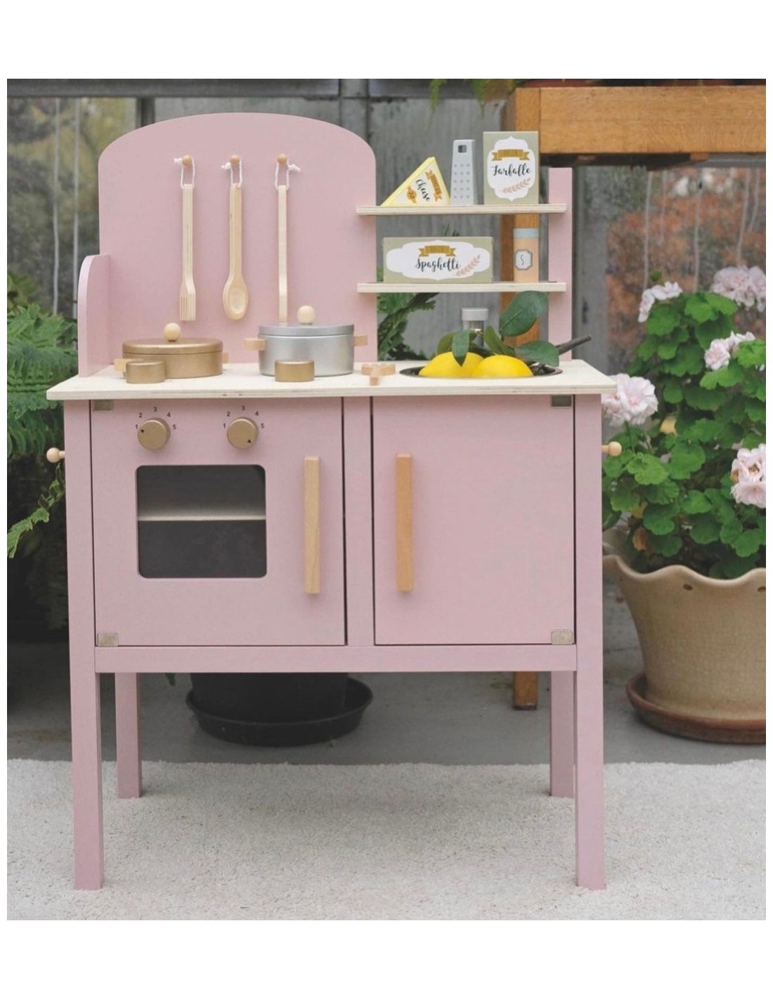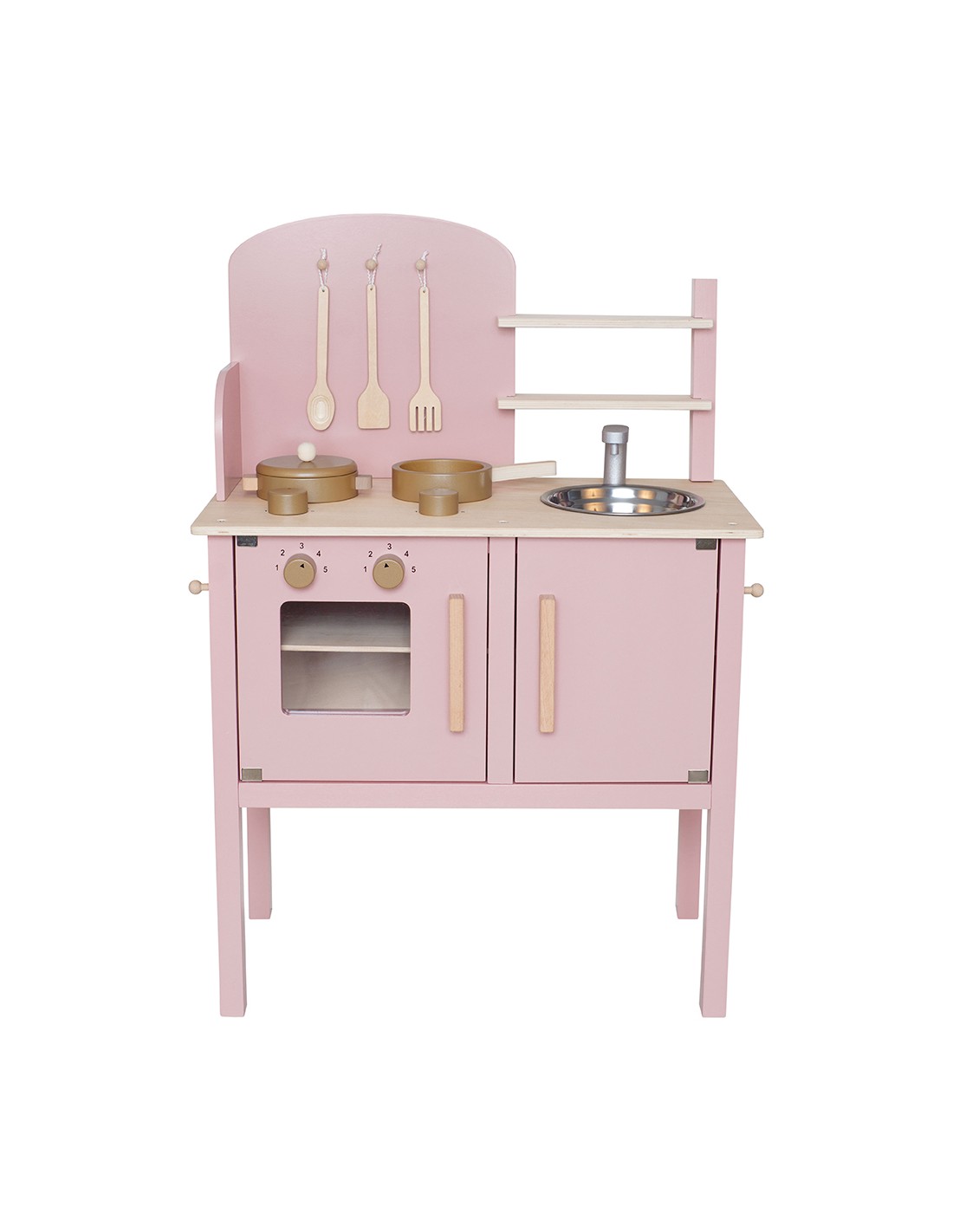 Kuhinja za djecu je opremljena pločom za kuhanje, pećnicom, sudoperom i dvije police s puno mjesta za sav kuhinjski pribor.