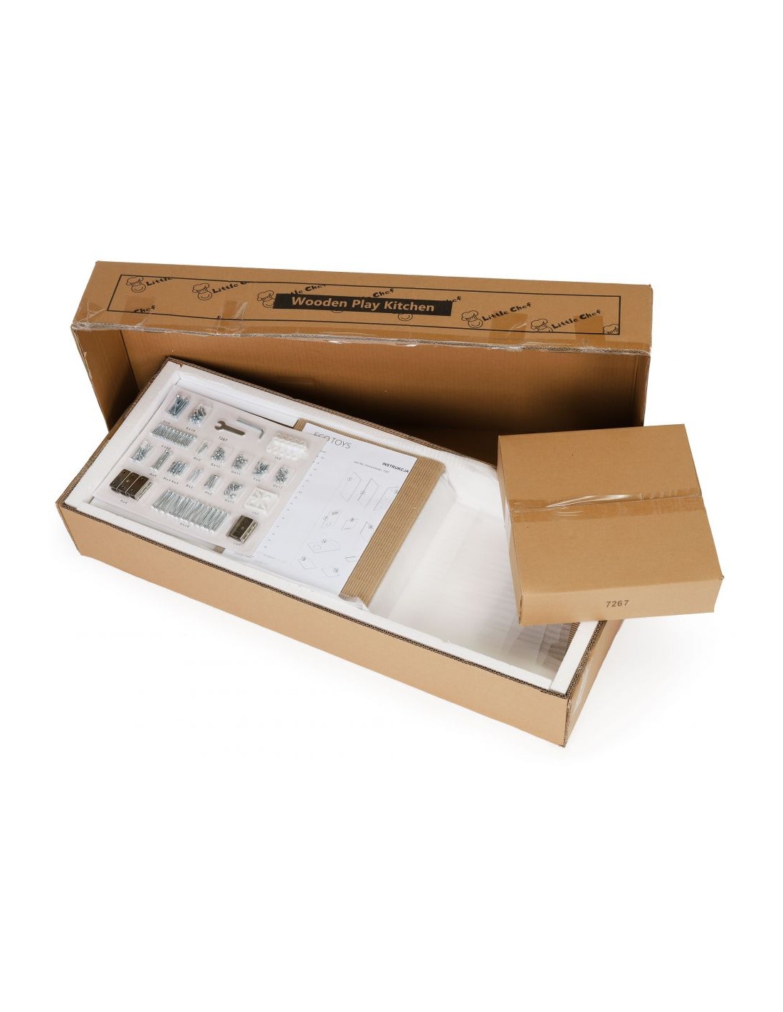 Dječja kuhinja je izrađena od visokokvalitetnog drvenog materijala MDF koji jamči trajnost, a pažljiva izrada jamči sigurnost tijekom korištenja.