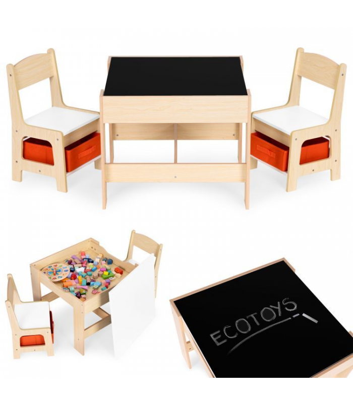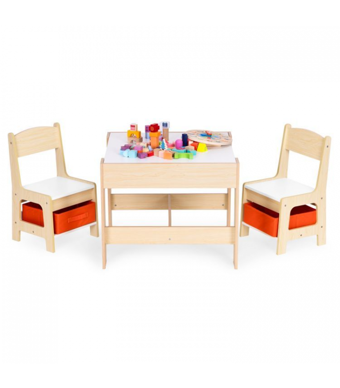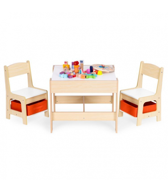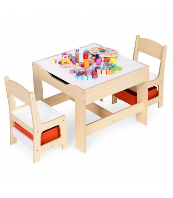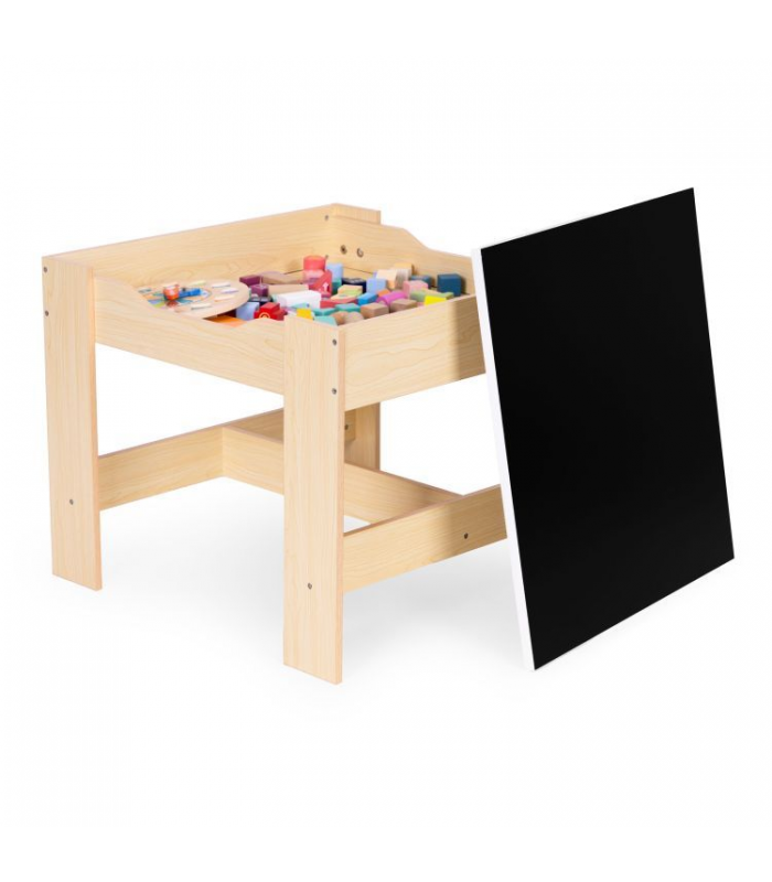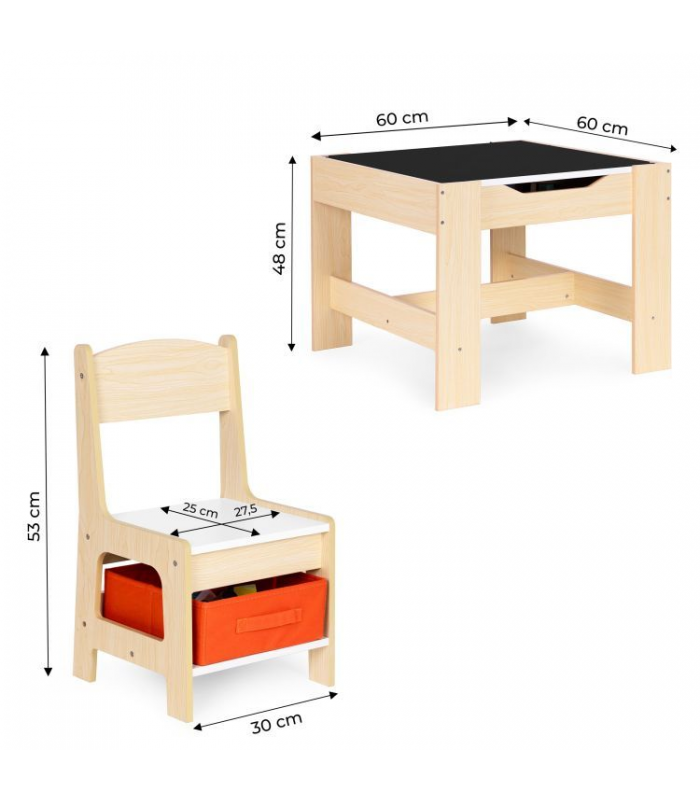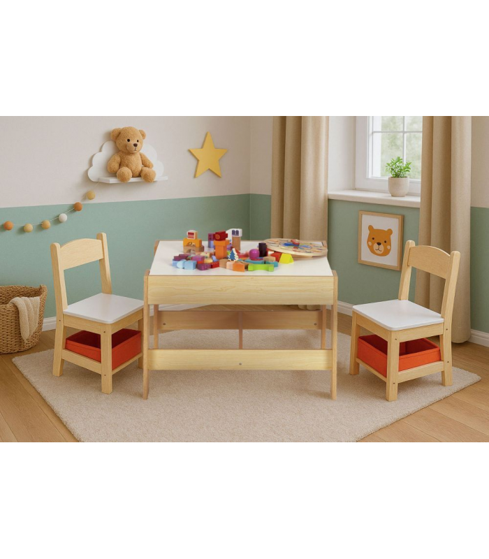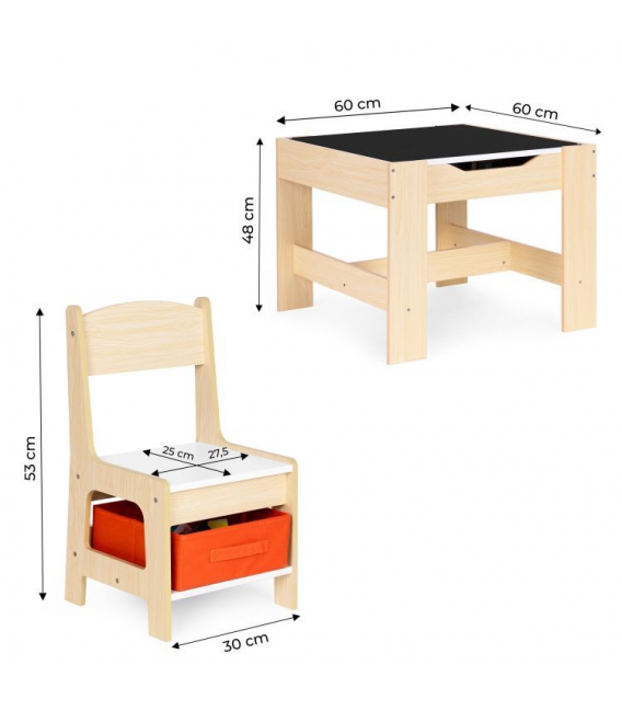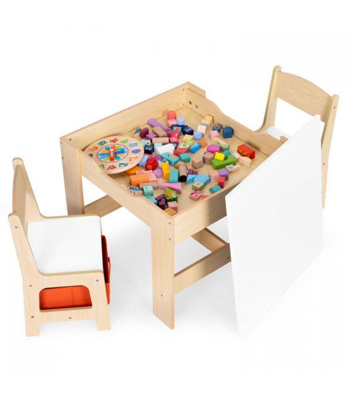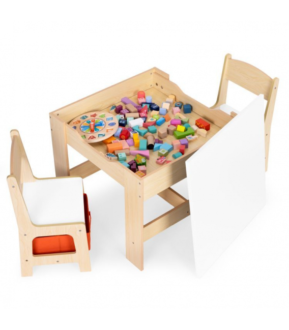 Ovaj drveni dječji set za sjedenje i igranje ima izdržljivu i stabilnu MDF konstrukciju.
