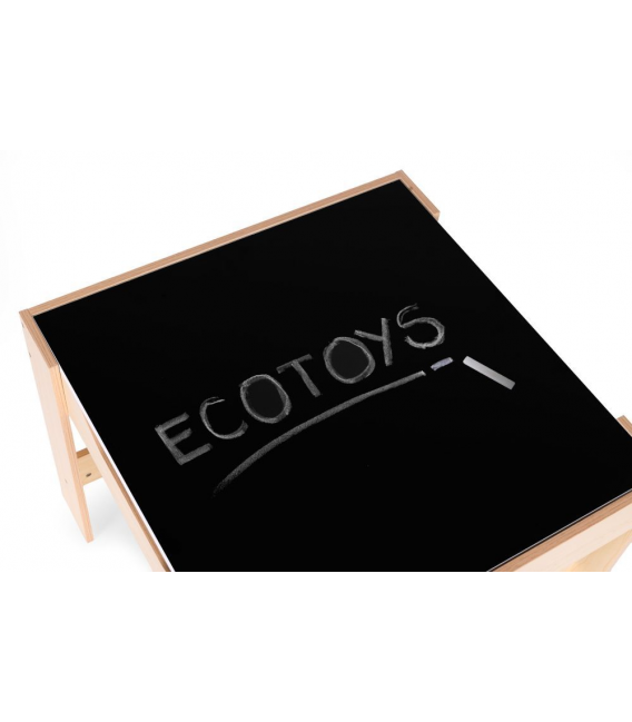 Stol je opremljen dvostranom, uklonjivom pločom, koju je moguće okrenuti i pisati kredom na drugoj strani ploče.