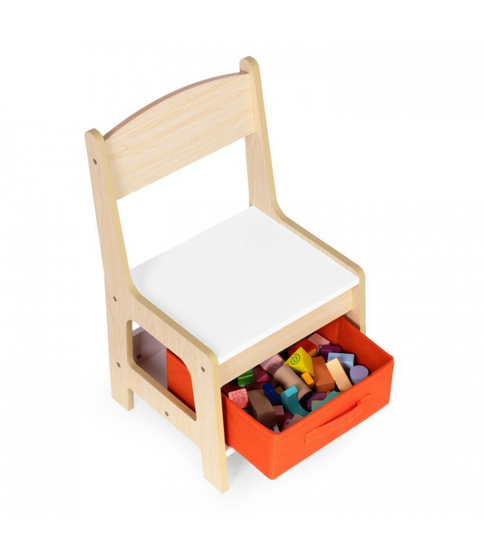 Ispod sjedala stolica nalaze se prostrane, tekstilne ladice, savršene za pohranu igračaka.