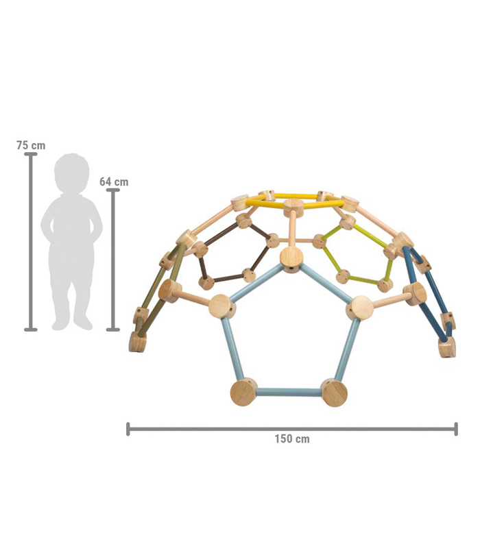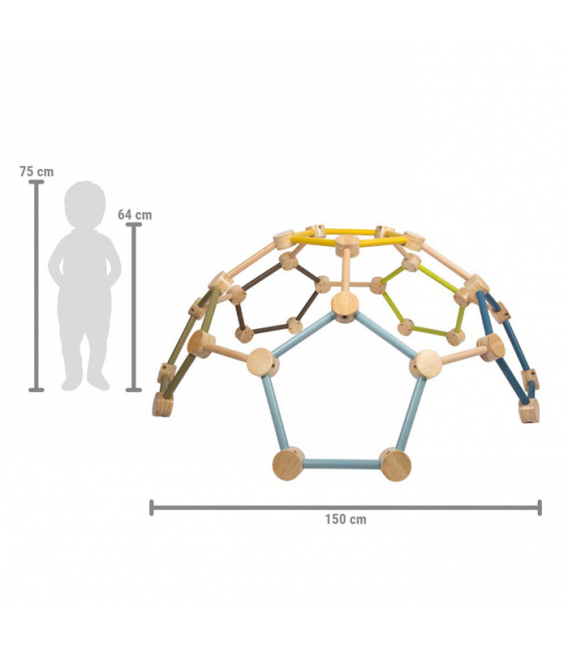 Bilo da se koristi kao oprema za penjanje, tajno skrovište ili mjesto za igru uloga ispunjenu maštom - ova geometrijska kupola za penjanje nudi beskrajne mogućnosti igre i mnoštvo prilika za trening motoričkih sposobnosti.